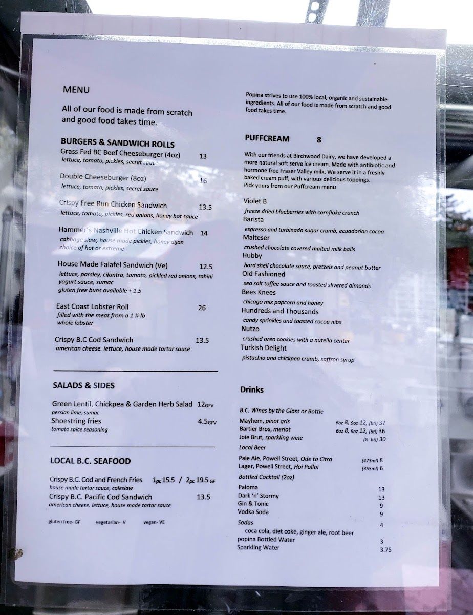 Popina Canteen’s menu keeps things simple, but each item earns its place with satisfying execution. The drinks lineup offers straightforward refreshment: crisp Popina Bottled Water, lively Sparkling Water, and classic sodas that pair well with the richer dishes. Nothing fancy-just clean, reliable options to reset the palate between bites.